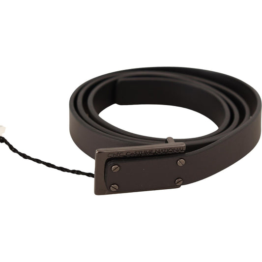 Costume National Dark Brown Leather Logo Buckle Belt