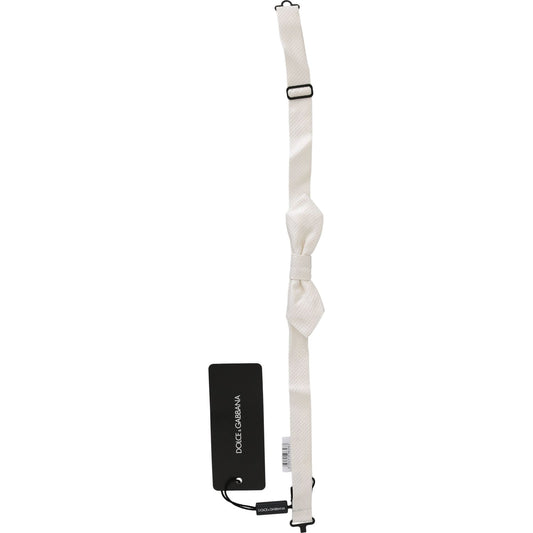Dolce & Gabbana White 100% Silk Slim Adjustable Neck Papillon Men Tie