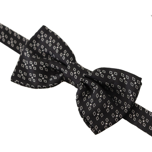 Dolce & Gabbana Black white 100% Silk Adjustable Neck Papillon Tie