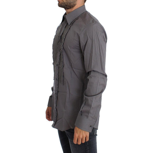 GF Ferre Gray Striped Cotton Casual Shirt