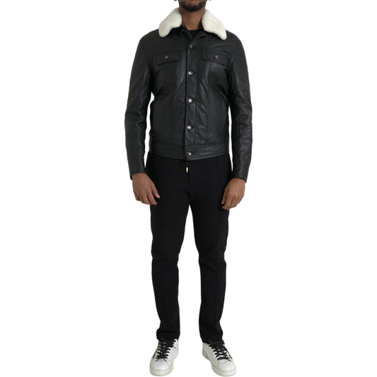 Dolce & Gabbana Black Lamb Leather Collared Men Coat Jacket