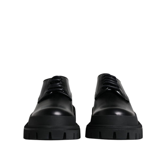 Dolce & Gabbana Black Leather Lace Up Trekking Dress Shoes