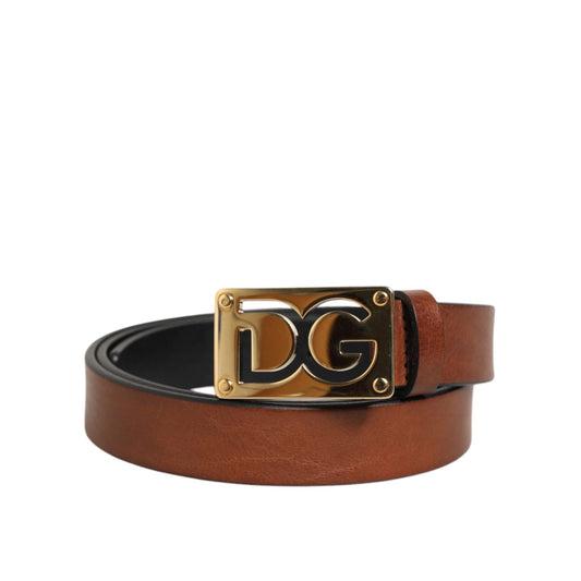 Dolce & Gabbana Brown Leather Classic Metal Logo Buckle Belt