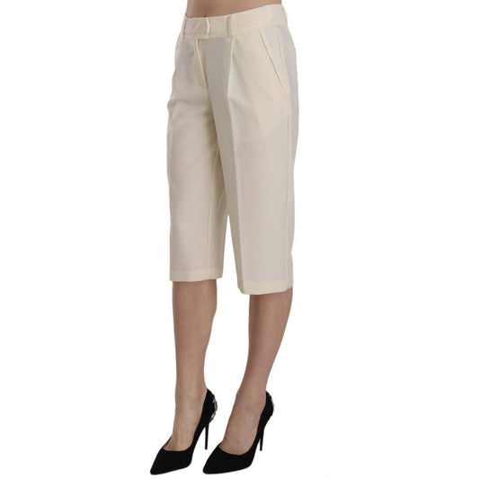 Silvian Heach Cream Mid Waist Cotton Straight Cropped Pants