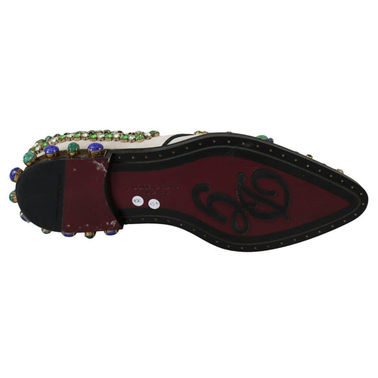 Dolce & Gabbana White Leather Crystals Dress Broque Shoes