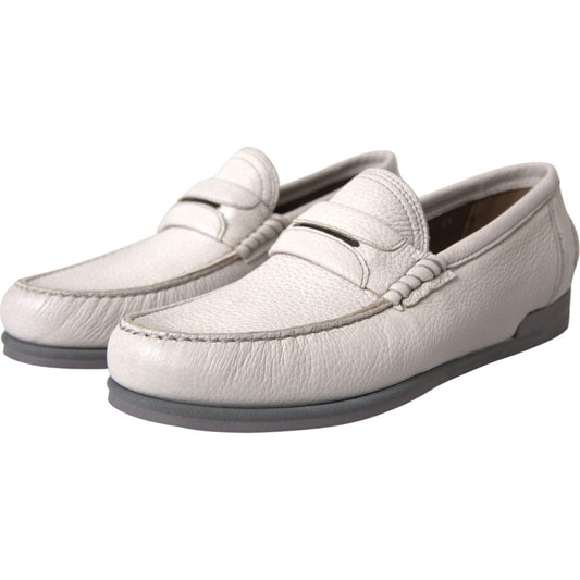 Dolce & Gabbana White Gray Leather Slip Mocassin Shoes Loafer