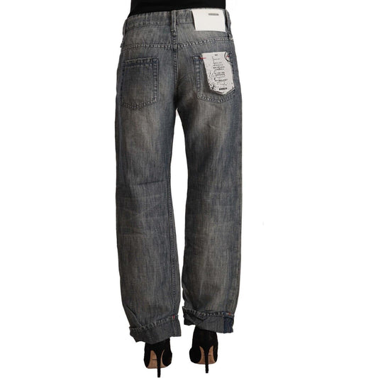 Acht Light Blue Distressed Cotton Folded Hem Denim Trouser Jeans