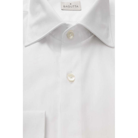 Bagutta White Cotton Men's Shirt Slim Fit With French Collar