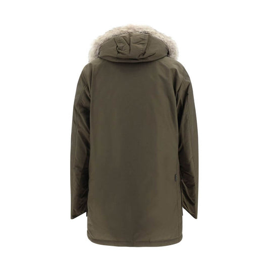 Woolrich Black Hooded Long Sleeves Fur Shearling Coat Jacket