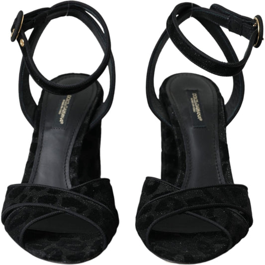 Dolce & Gabbana Black Leopard Suede Heels Sandals Shoes