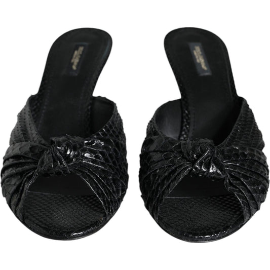 Dolce & Gabbana Black Exotic Leather Heels Slides Shoes