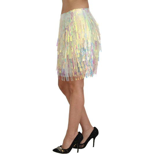 Dolce & Gabbana Multicolor Iridescent Fringed Tulle Skirt