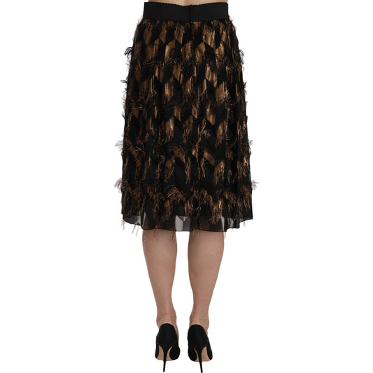 Dolce & Gabbana Black Gold Fringe Metallic Pencil A-line Skirt