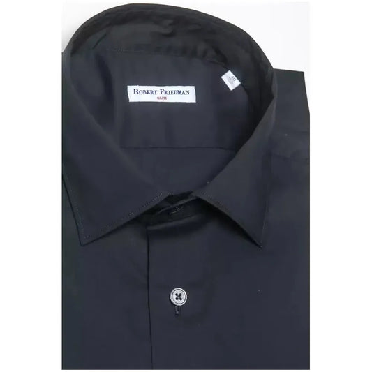 优雅的黑色棉质纽扣衬衫