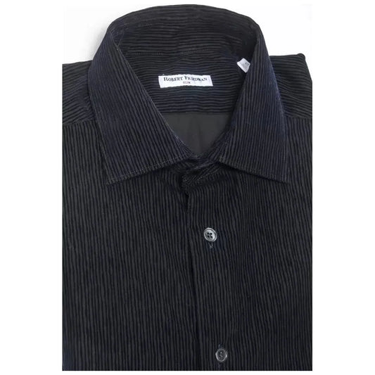 优雅黑色纽扣式常规衬衫
