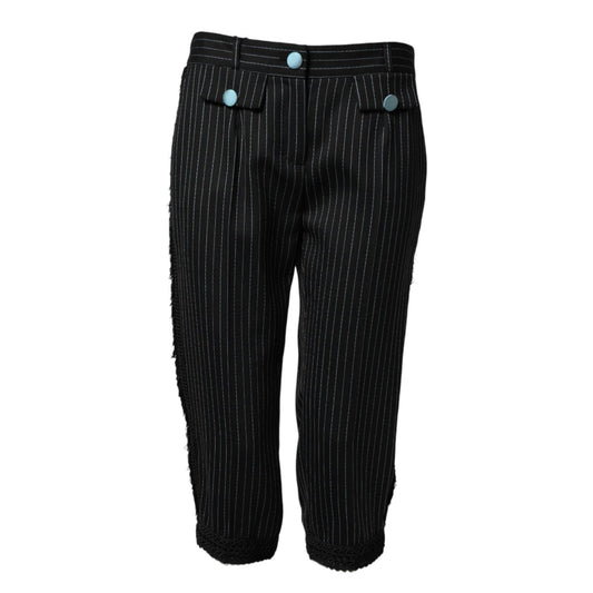 Dolce & Gabbana Black Wool Stripes Cropped Trouser Pants
