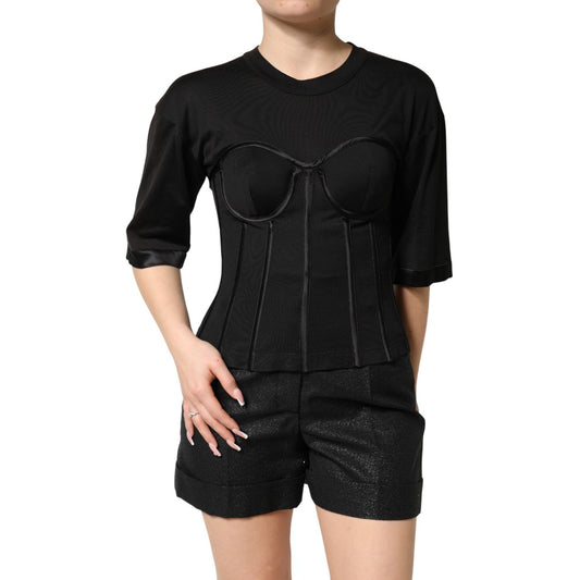 Dolce & Gabbana Black Cotton Bustier Corset Short Sleeves T-shirt