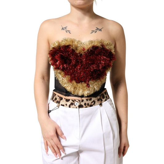 Dolce & Gabbana Black Gold Heart Bustier Corset Tinsel Top