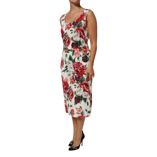 Dolce & Gabbana Multicolor Floral Print SilkSheath Midi Dress