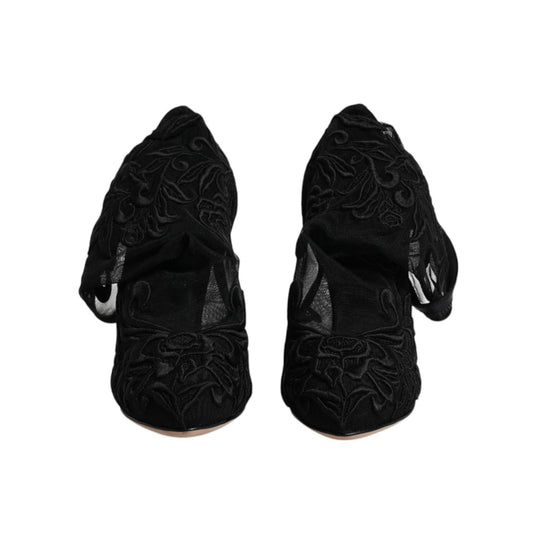 Dolce & Gabbana Black Tulle Stretch Heels Mid Calf Boots Shoes