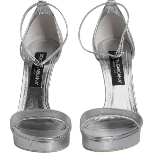 Dolce & Gabbana Silver Leather Platform Keira Sandals Shoes