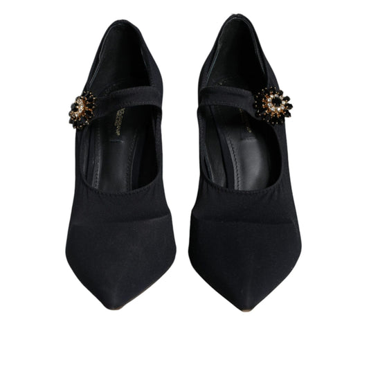 Dolce & Gabbana Black Mary Jane Jersey Crystal Pumps Shoes