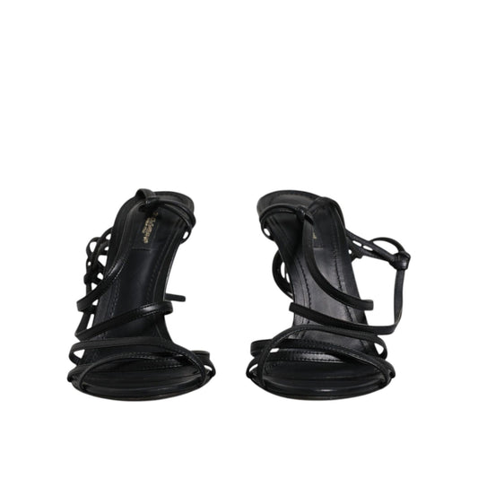Dolce & Gabbana Black Leather High Heels Keira Sandals Shoes