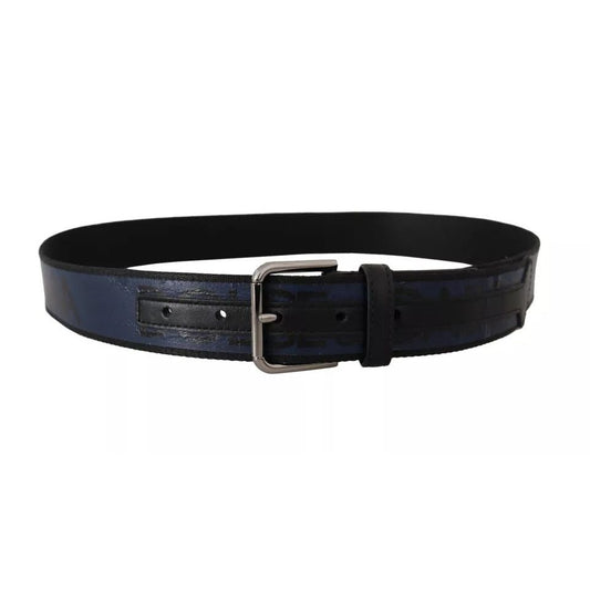 Dolce & Gabbana Blue Black Logo Print Silver Buckle Belt