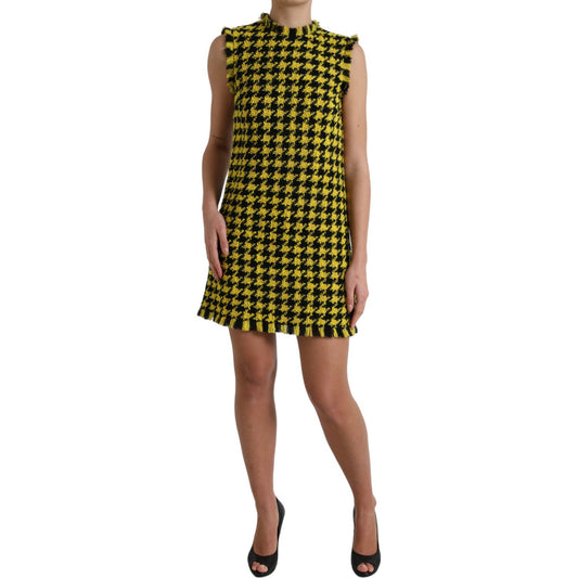 千鸟格针织别致黄色迷你裙