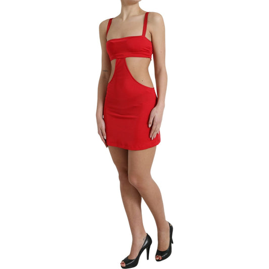 精致红色镂空紧身迷你连衣裙